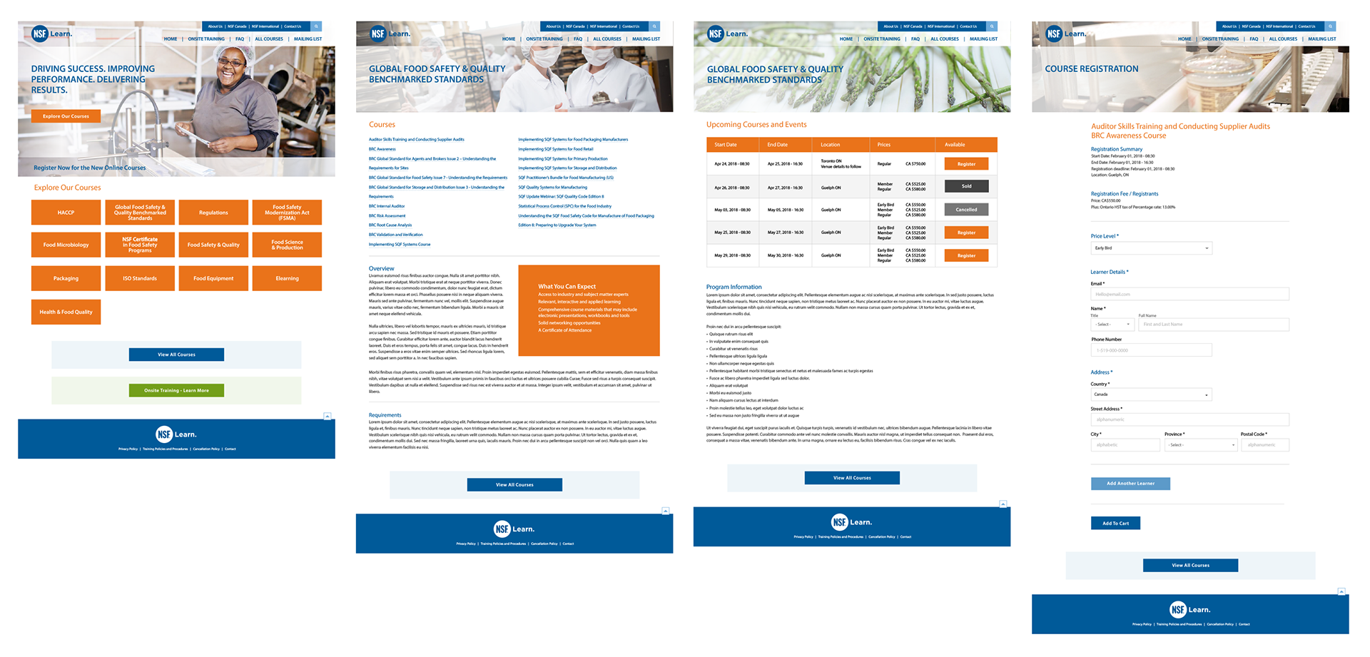 NSF International, a global leader in food safety and quality standards, needed a scalable online course catalogue to support the 6,000+ professionals they train each year. Training was fragmented across regions, course presentation was inconsistent, and learners struggled to search, and had no online registration. Staff spent extra time manually managing updates. The team needed a unified, accessible global catalogue that streamlined the learner journey while reinforcing NSF’s brand credibility.